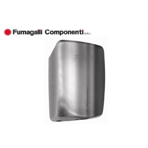 Piccolo, potente, completamente automatico.Asciugamani elettrico jet ad aria,compatto,con azionamento a fotocellula. Coperchio in acciaio inox AISI 304. Dotato di sensore automatico di temperatura che regola l’inserimento della resistenza elettrica per il riscaldamento del flusso d’ aria solo nel caso in cui la temperatura ambiente scenda sotto i 25°C,ottenendo un considerevole risparmio energetico. Sistema antivandalo di spegnimento automatico dopo 40 secondi di funzionamento continuo. Grado di protezione contro l’inserimento di corpi estranei e contro l’acqua:IP13. Tempo di asciugatura medio: 10-15’’. Sistema antibatterico UV incluso. Sistema di chiusura con viti. Tensione di esercizio:220/240 V. Frequenza di rete:50/60 Hz. Assorbimento totale da un min di 550W a un max di 1150-1350W. Classe di isolamento =Classe I.